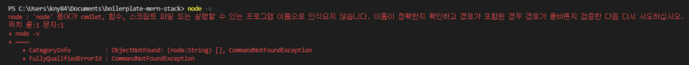 터미널에서 node -v