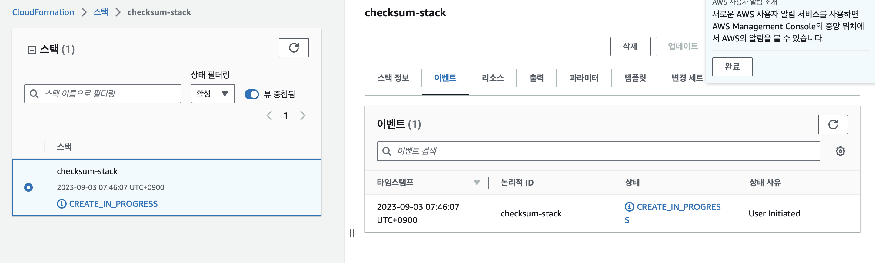 # cloudformation stack 오류