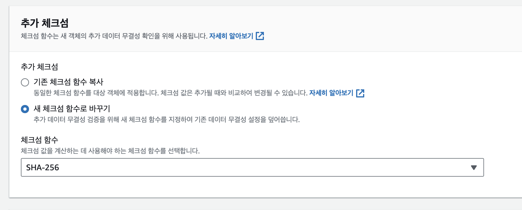 이후 생성된 batch job을 실행시켜주면 추가 체크섬이 활성화 됩니다.