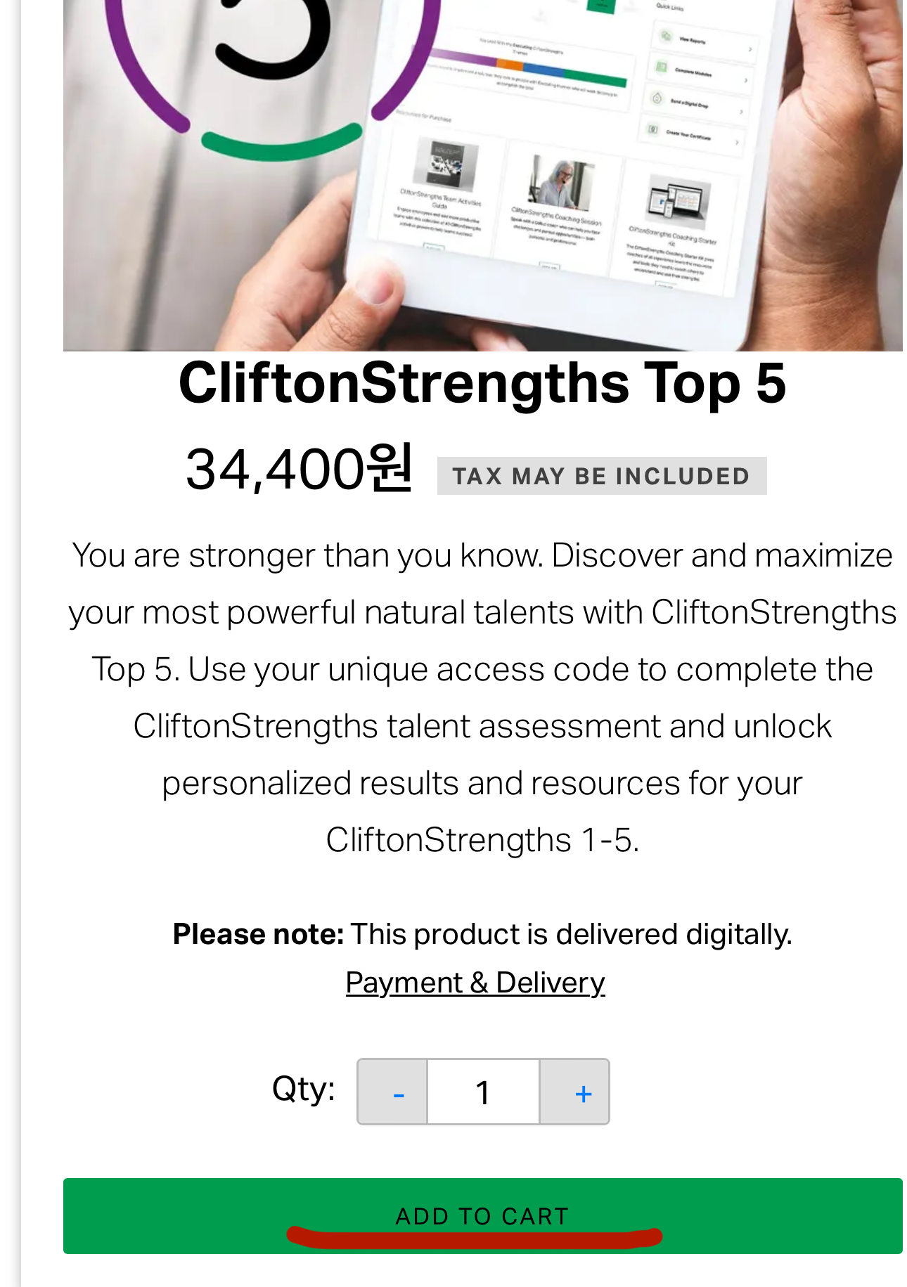 2. Top 5 CliftonStrengths와 CliftonStrengths 34 둘 중에 원하는 것을 선택한다.