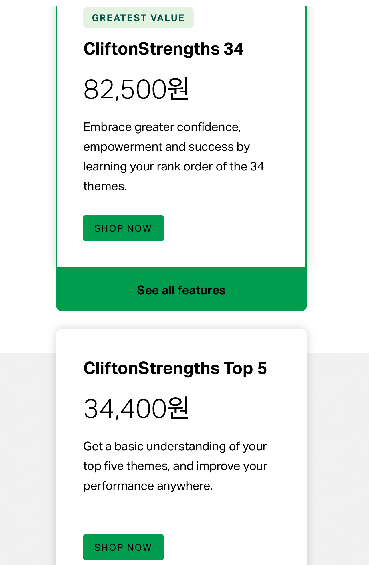 강점 Top 5와 Top 34 두 가지 중 하나를 선택할 수 있다.