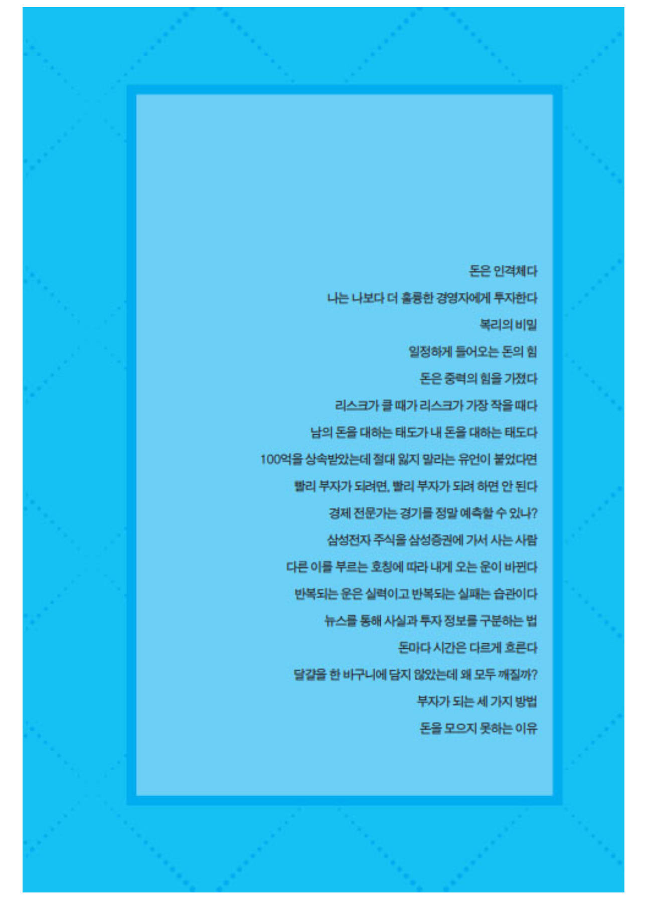 근데 졸린 상태에서 항상 읽어서 그런건지 24년에 읽은 책 중 그렇게까지 강렬했던 책은 없었던 와중 단순히 경제/재테크 책인 줄로만 알았는데 생활/자기계발에 대한 조언들도 꽤 많아서 이번년도에 읽은 책들 중 정말 추천할 만한 책이고, 그래서 정리하고 싶어서 정리해놓으려한다. (다시 내가 꺼내보기용)