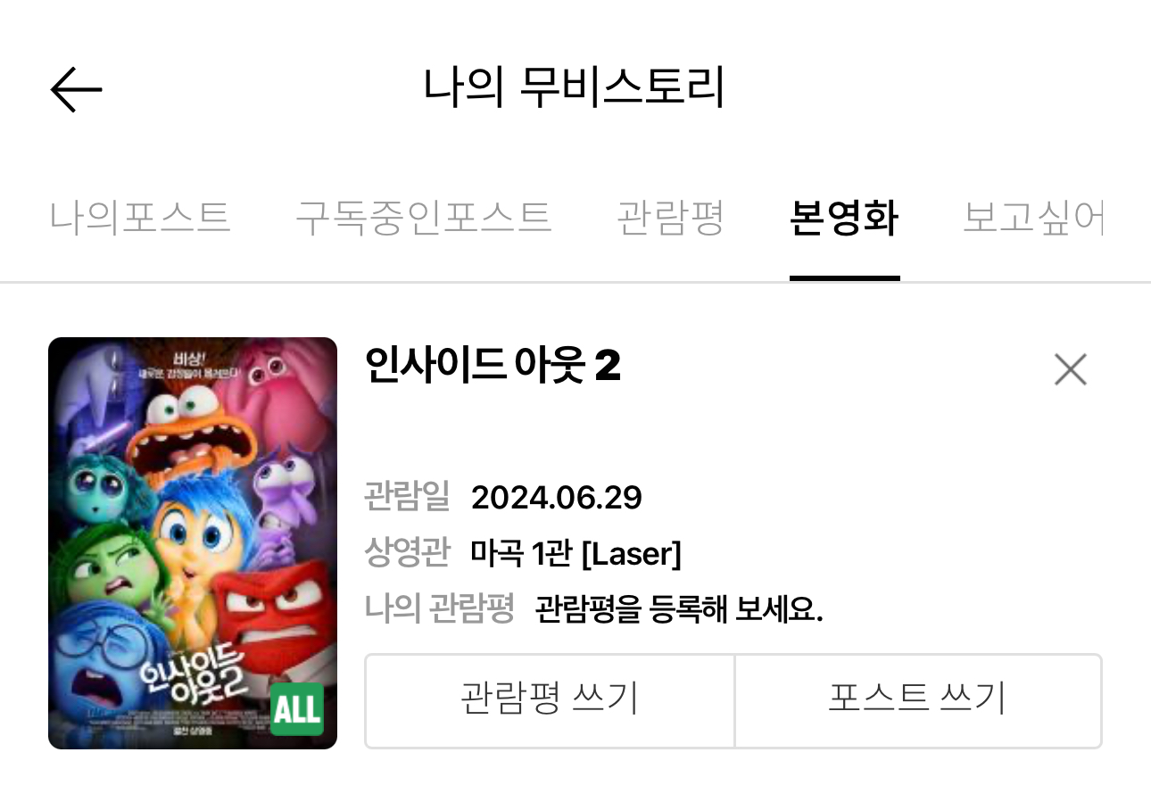 결혼식 같이 갔던 동기며 주변 친구들이며 열변을 토하며 꼭 보라 한 ‘인사이드 아웃2’나 보러 가기로 했다.
