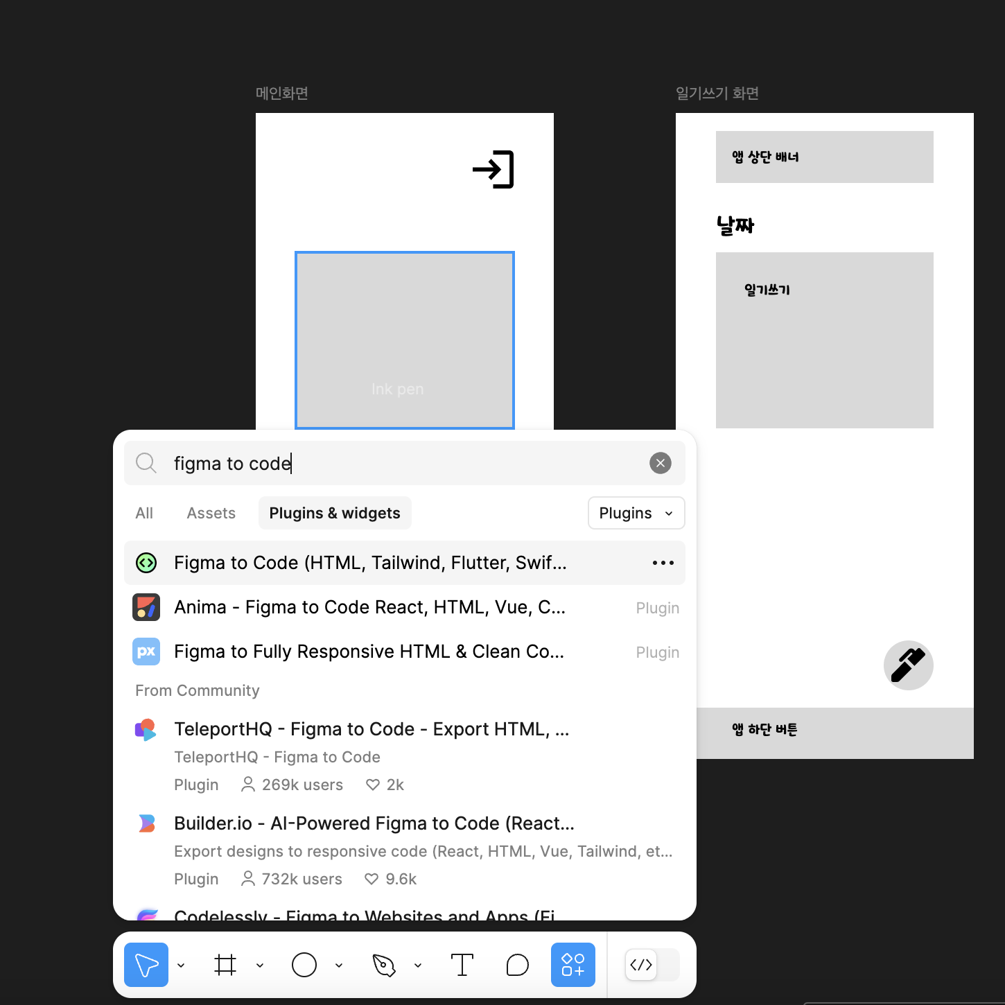 - Figma to Code 플러그인 설치